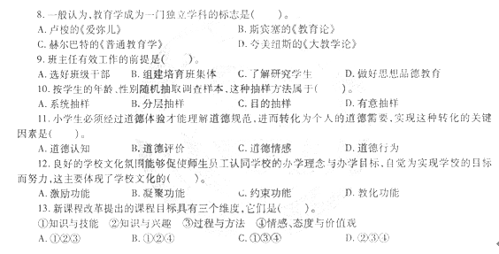 13、C【解析】为了实现学生多元化的发展目标,新课程制定了三大课程目标,即知识与技能、过程与方法、情感态度与价值观。