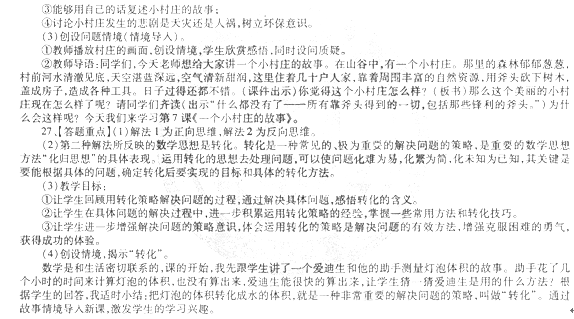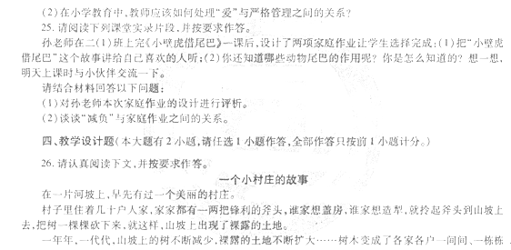 25、【答题重点】(I)孙老师根据新课程改革的理念和要求,重新认识作业的意义,并赋予作业新的意义和价值,充分体现作业的愉悦性、自主性、实践性和科学性。孙老师的做法是值得肯定和提倡的。