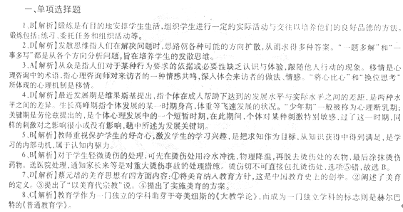 11、A【解析】道德认知是人们对道德规范及其意义的理解和掌握,也是人们确定对客观事物的态度和行为准则的内在依据。小学生理解道德规范并转化为道德需要的关键是道德认知的改变。