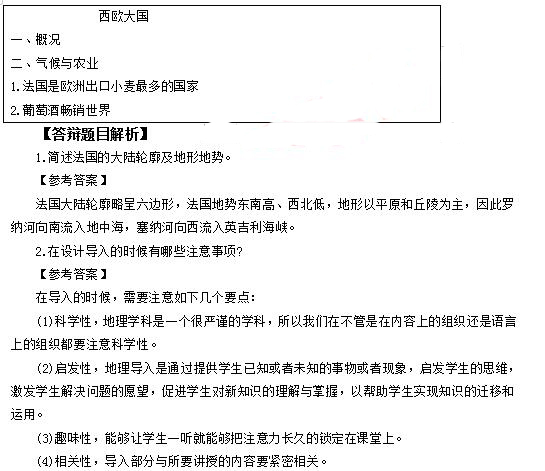 2018下半年初中地理教师资格证面试真题:法国--西欧大国