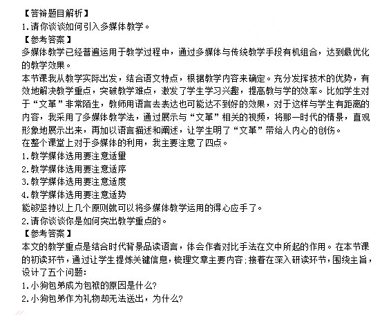 2018下半年高中语文教师资格证面试真题:《小狗包弟》