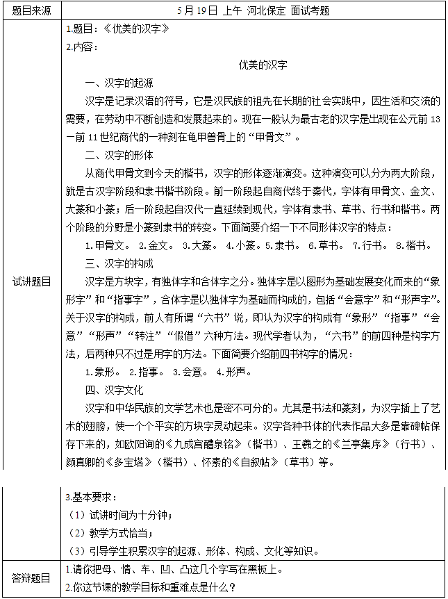 2018上半年高中语文教师资格证面试真题:优美的汉字 答案
