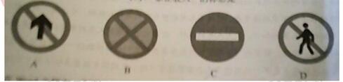 25.交通标志成为现代生活一部分, 在保证道路交通安全、顺畅方面有着重要作用,分为主标志和辅助标志两大类,主标志包括禁令标志、警告标志、指路标志、指示标志等。下列选项中标志禁止驶入标志的是()